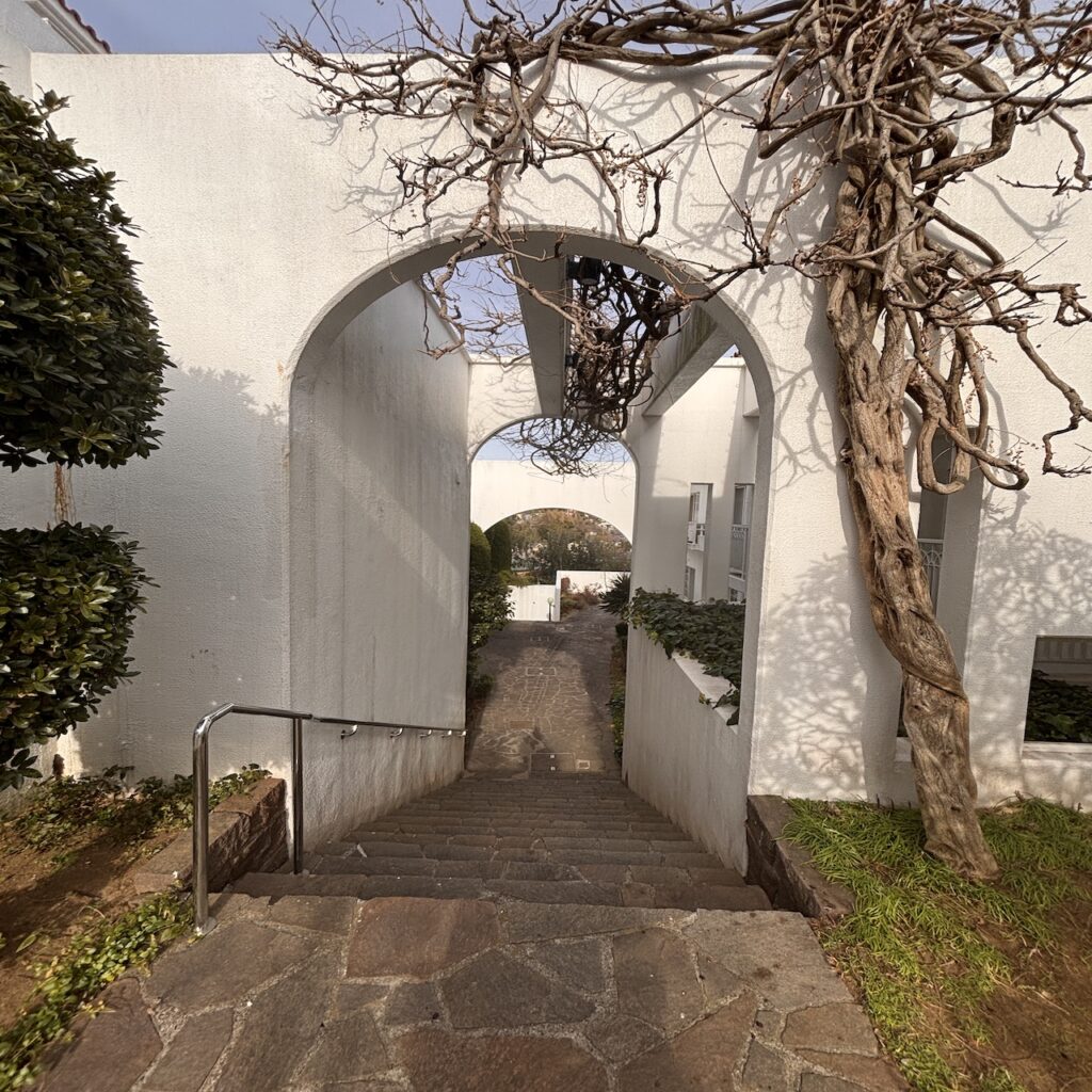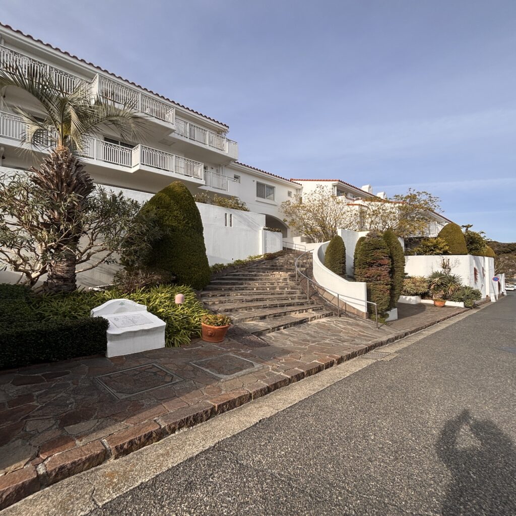 高台の敷地内に向かう斜行エレベーターに乗り込み、敷地内に入ると、そこはまるで海外にいるかのようだ。