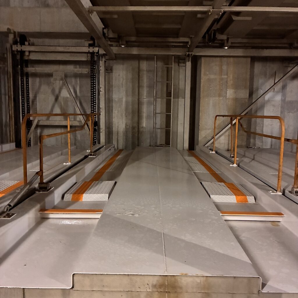1階から車を入れ機械式で地下に下ろす仕様となってます。