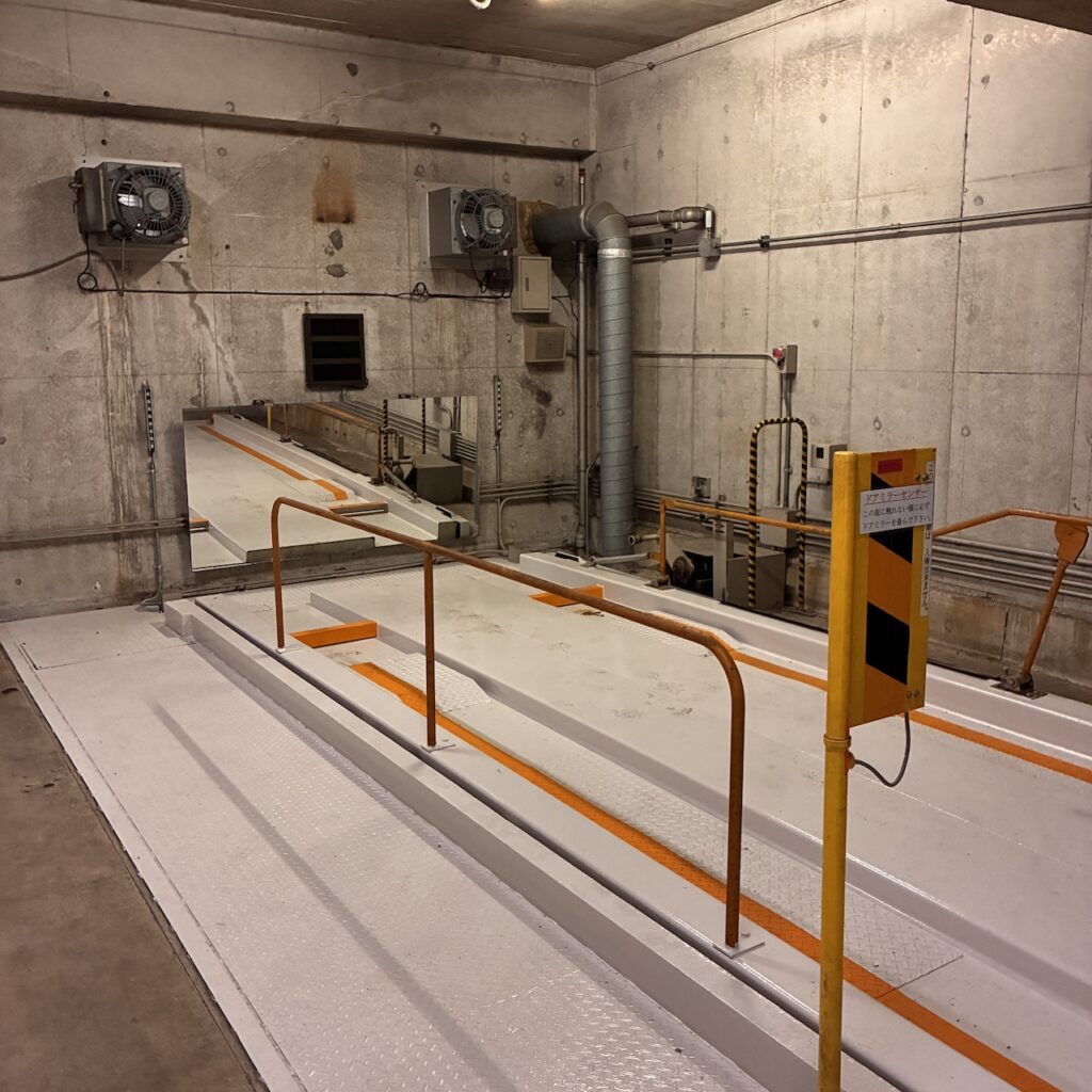 この駐車場は地下部分、約74坪の広さを持つ空間である。