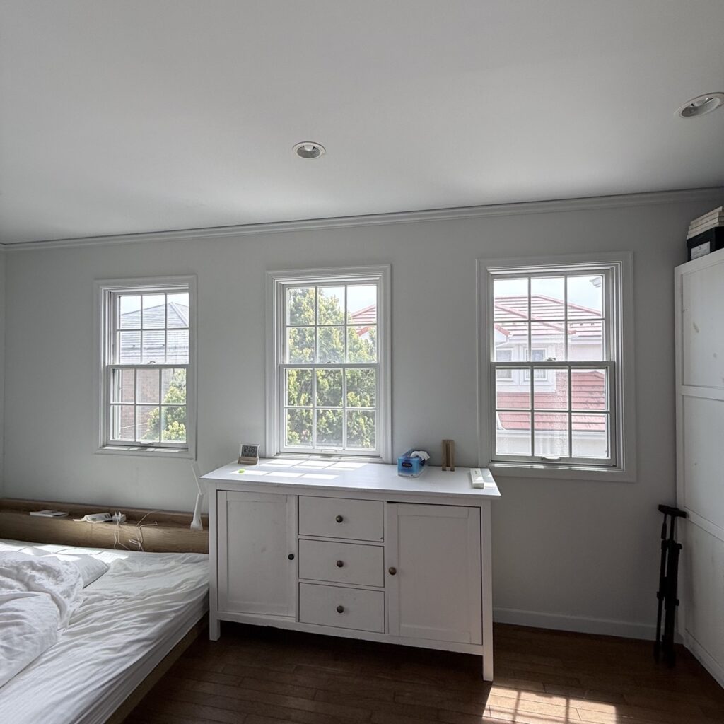 リビングは、庭から差し込む明るい光に満たされている。