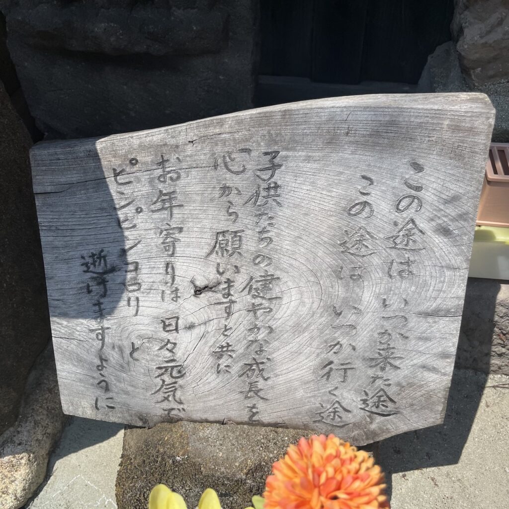 空気の澄み切った山の上で、ピンピンコロリの看板と三猿の像に見守られながら、静けさの中で暮らすことを思う。